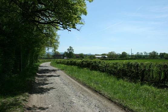 Dit is de privéweg waarover je aan komt rijden. Aan het einde zie je La Metairie liggen.